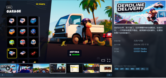 10.《DEADLINE DELIVERY》,扮演猴子邮差送货,主打漂移炫酷,可以多人联机。