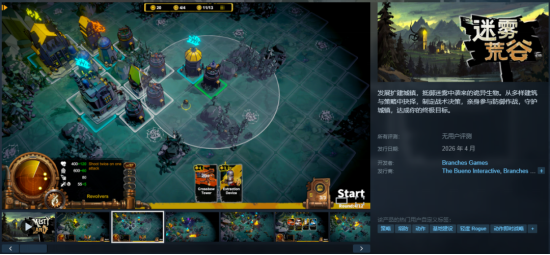 1.《迷雾荒古》,融合塔防、基建、肉鸽元素,除了建造建筑防御自己还得亲自上阵,建筑和武器都配备丰富升级选项。