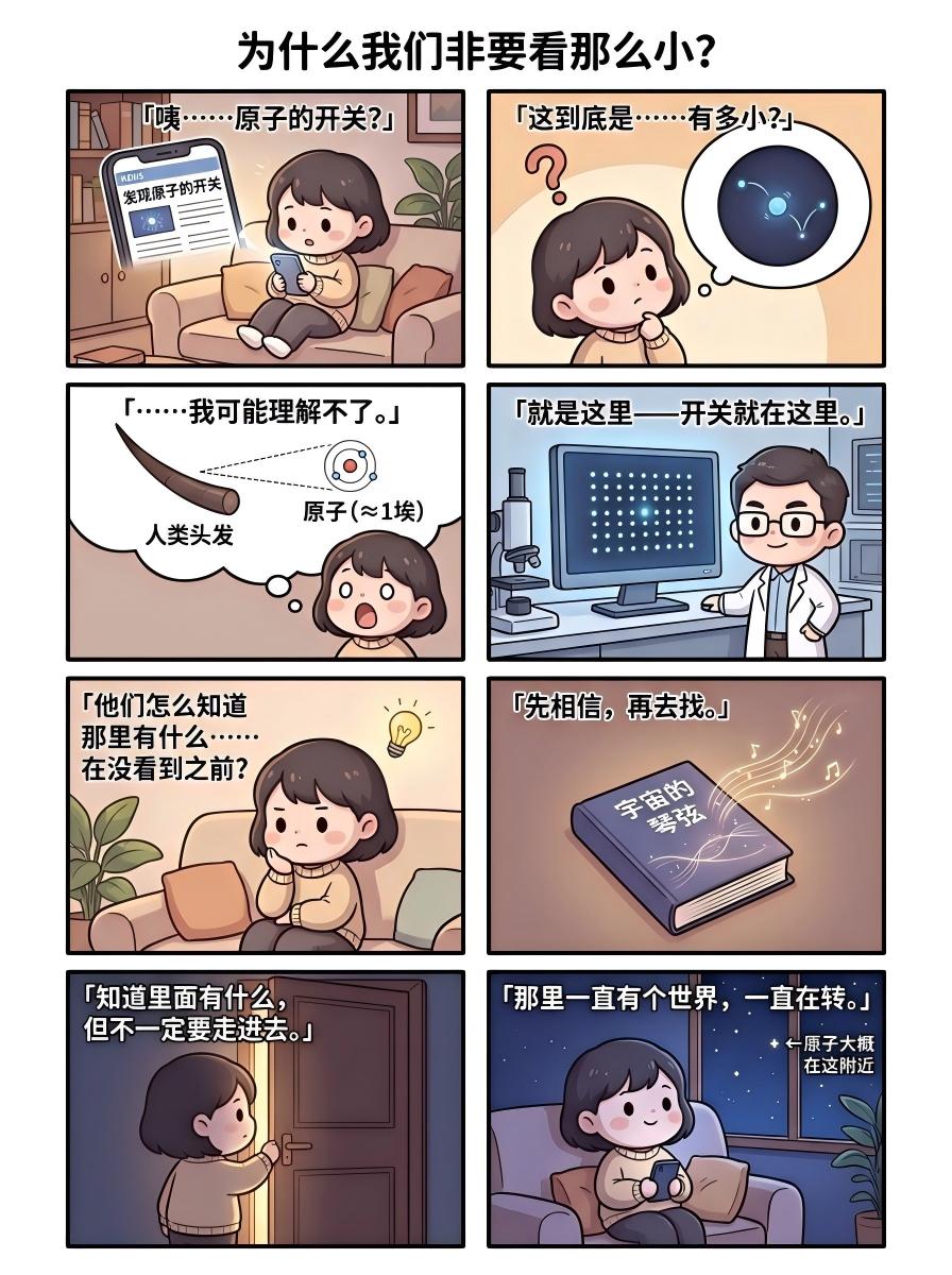 不是因为懂技术,而是因为这事本身有一种没法用语言说清楚的迷人点人在使劲儿缩小,缩到能对着原子排列提出疑问的程度,然后老老实实地待在那儿, 等着它动一下。