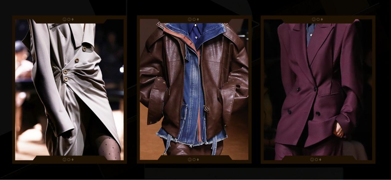 色彩在权威与叛逆的边界游走,炭黑、羊皮纸白与深海军蓝与燕麦灰,构筑起冷静的职场叙事,暖调灰褐与赤陶土悄然注入80年代的体温。本季破格融入鲜亮色块,碰撞刻板规条的桎梏,让鲜活自我冲破压抑气场,点亮属于职场女性的自在光芒。