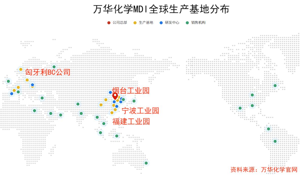 万华化学的MDI产能布局呈现出全球化态势,烟台、宁波、福建、匈牙利四大生产基地,不仅能覆盖国内市场,还能辐射海外区域,就近响应下游需求。
