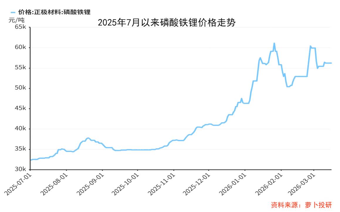 2026年2月,磷酸铁锂正极材料价格突破6万元/吨,较2025年年中低点涨幅超过80%。