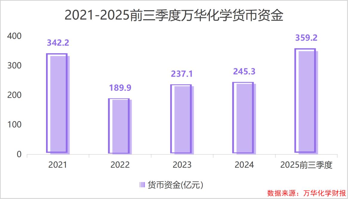 截至2025年三季度末,万华化学货币资金达到359.2元,为新业务扩张提供支撑。