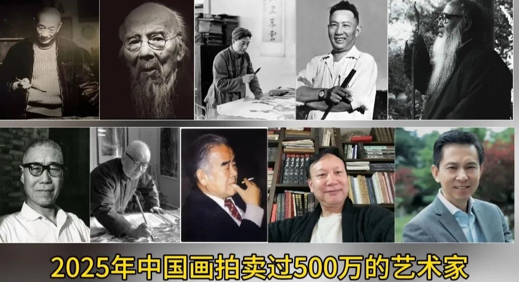 2025年度中国画拍卖过500万的艺术家分别是:林风眠、齐白石、徐悲鸿、傅抱石、张大千、潘天寿、李可染、黄胄、李佰虎、何家英。