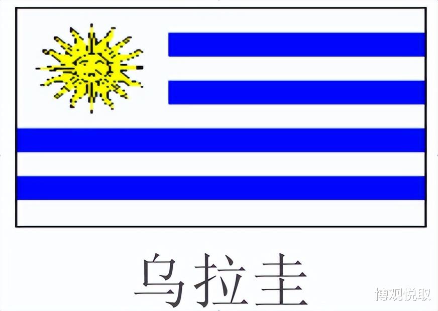 向北跨越潘帕斯草原,乌拉圭国旗同样以蓝白两色为基调,但其设计更显层次感:九条白蓝相间的横条平行排列,白色左上角缀有“五月太阳”标志。这面1830年7月11日正式启用的旗帜,蓝色代表自由,白色象征和平,九道条纹则对应乌拉圭独立初期的九个行政区域。而“五月太阳”的设计更具深意——其放射出的八道光芒角与八道波浪线光芒,既呼应了南美独立运动的“五月革命”精神,也隐喻着国家对主权独立的坚定维护。