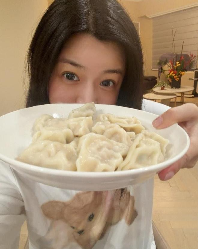 陈妍希吃饺子,与家人团聚暖心过除夕。