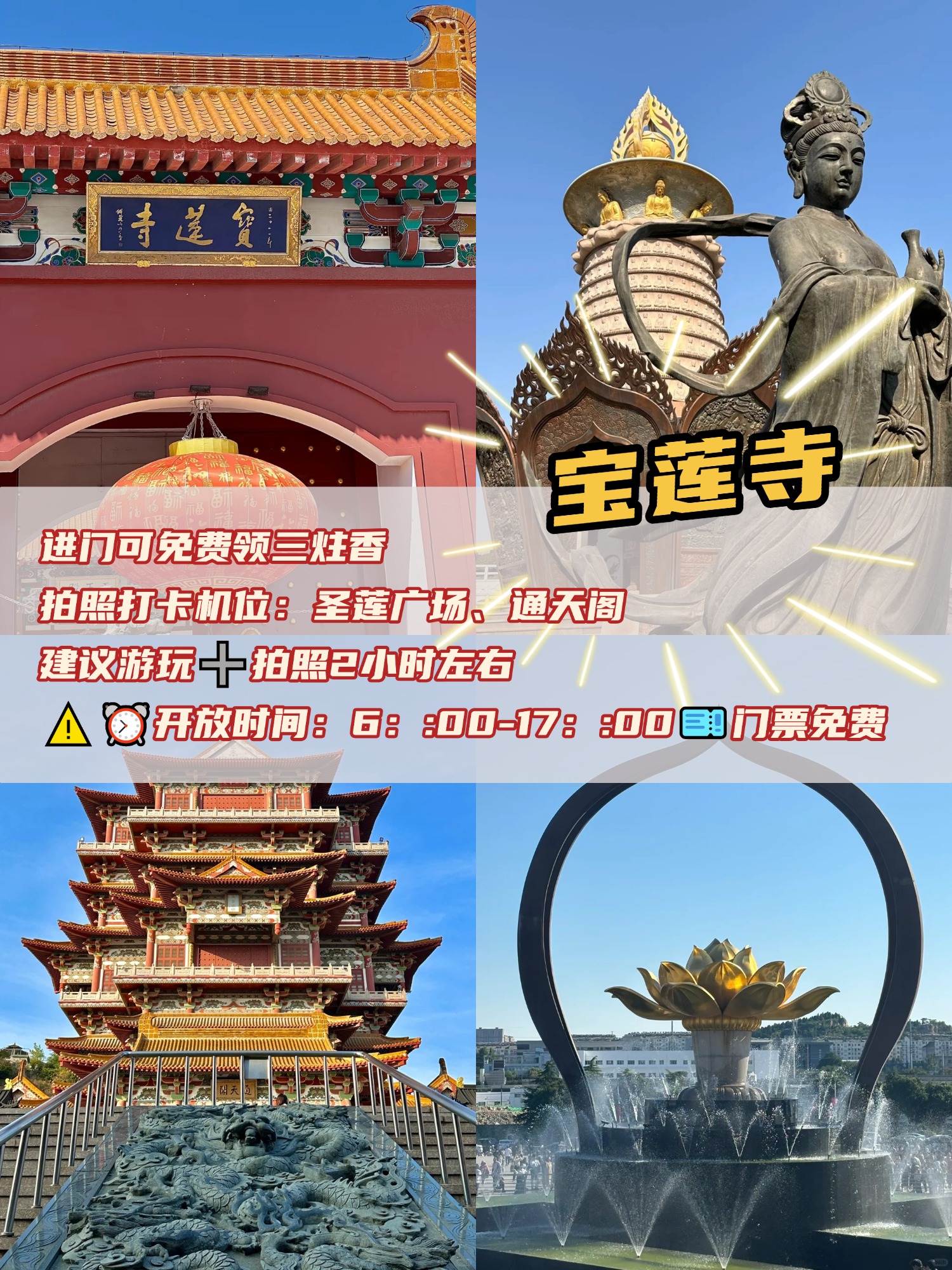 拍照超级出片!门口免费领三炷香,里面有各种殿祈福,有全国最高的佛阁——通天阁;吃素面早点去,要排队!出去经过宝莲庙市,打卡一杯宝莲露,首创禅茶,别的地方都没有,推荐一试!
