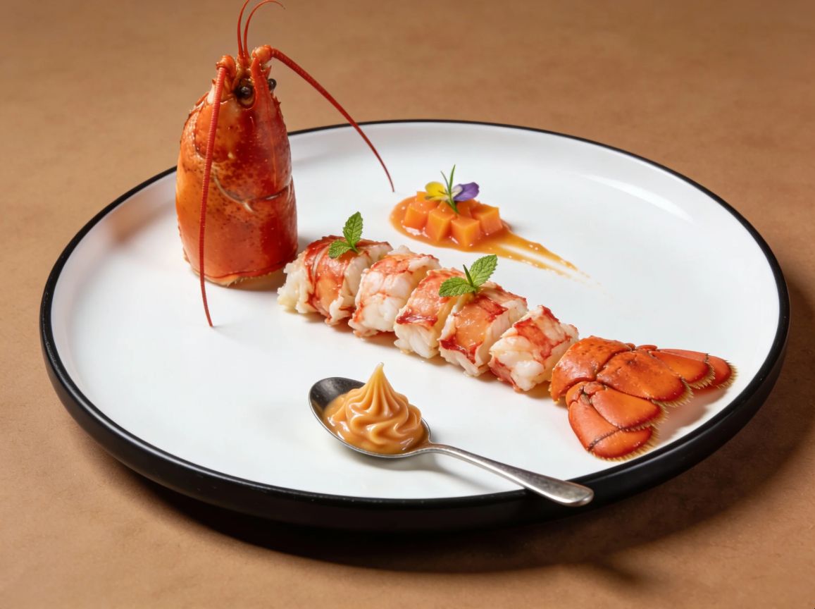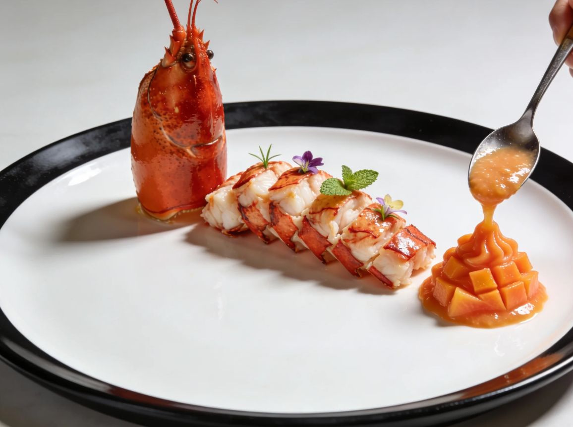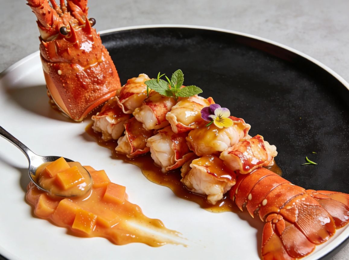 酱汁的独立:木瓜酱是“蘸”酱,绝非“浇”头。分开摆放,让食客自行取用,是保留龙虾本味与仪式感的核心。