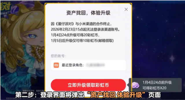 首先如果渠道服转官服?在此向大家详细介绍步骤,保证是一看就会。咱们以蛋仔派对为例,我们可以先打开小米渠道服的客户端,虽然渠道关停无法游戏,但是还保留转官服的登录入口。