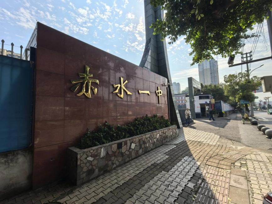 赤水一中,创办于1927年,是赤水市教育局主管的公立中学,该校2002年被评为贵州省二类示范性高中,截至2020年,校园占地75亩,建筑面积31313平方米,绿化面积16736平方米,设42个教学班,在校生2260人。