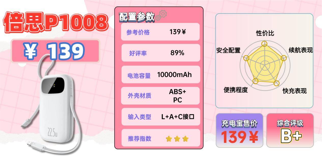 哪个牌子充电宝质量比较好?8、倍思P1008充电宝