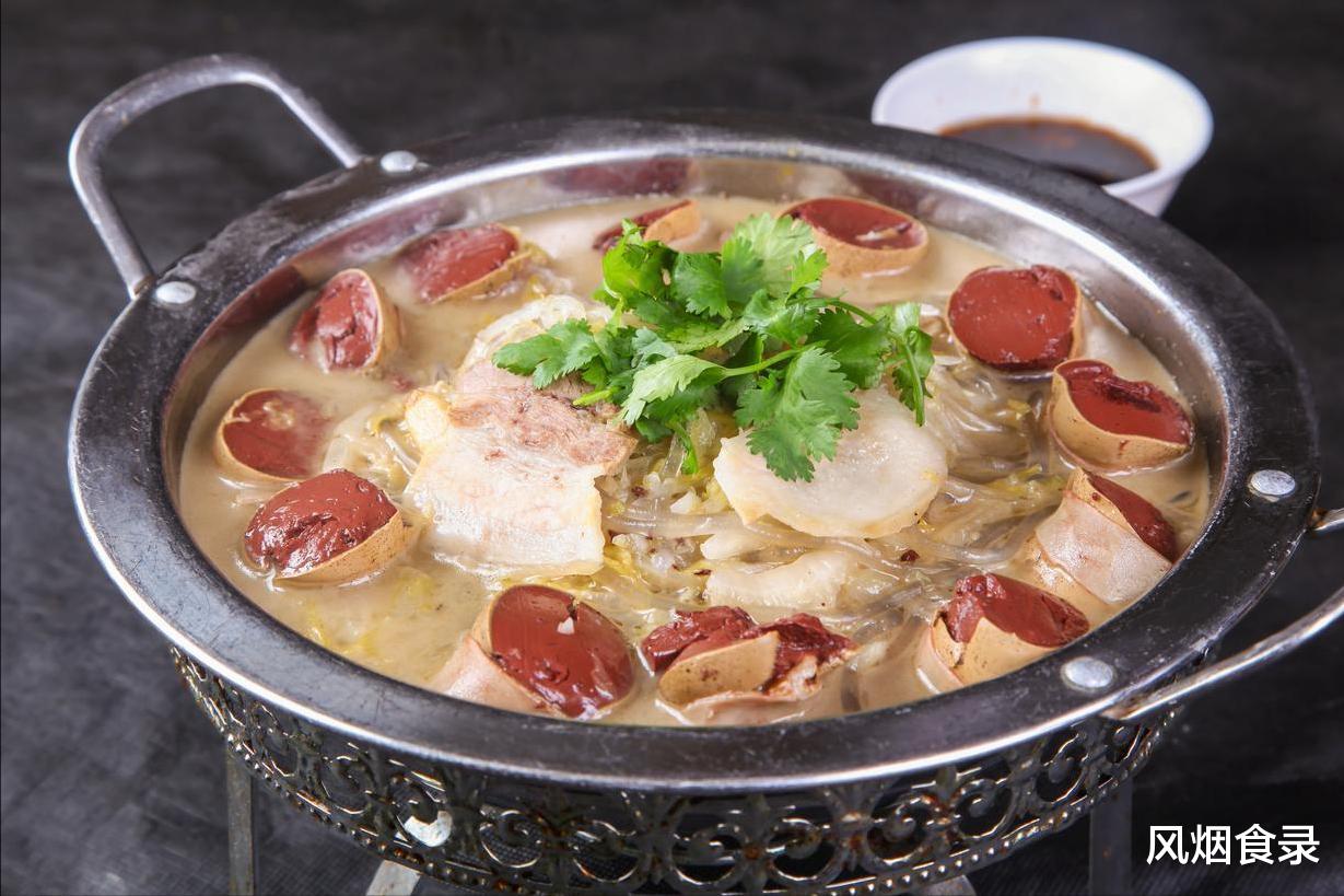 白肉片薄如纸,血肠段滑似脂,酸菜丝吸饱了肉香,