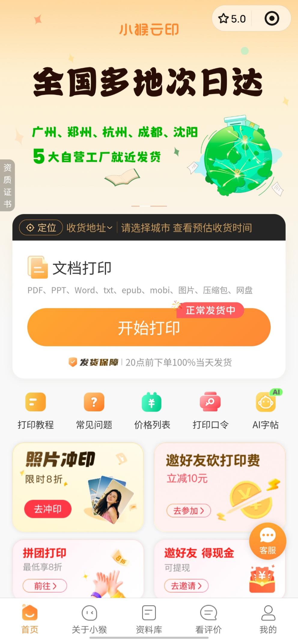 这是什么神仙政策?要知道,2.9元不过就是打印几十页纸的钱。小猴云印广州/郑州/杭州/成都/沈阳都是有打印工厂,你下单后系统会自动匹配最近的工厂发货。我亲测,前一晚8点前下单,第二天准备去图书馆或者见习的时候,顺丰小哥已经把资料送到手边了!