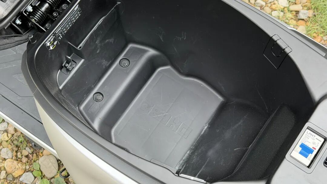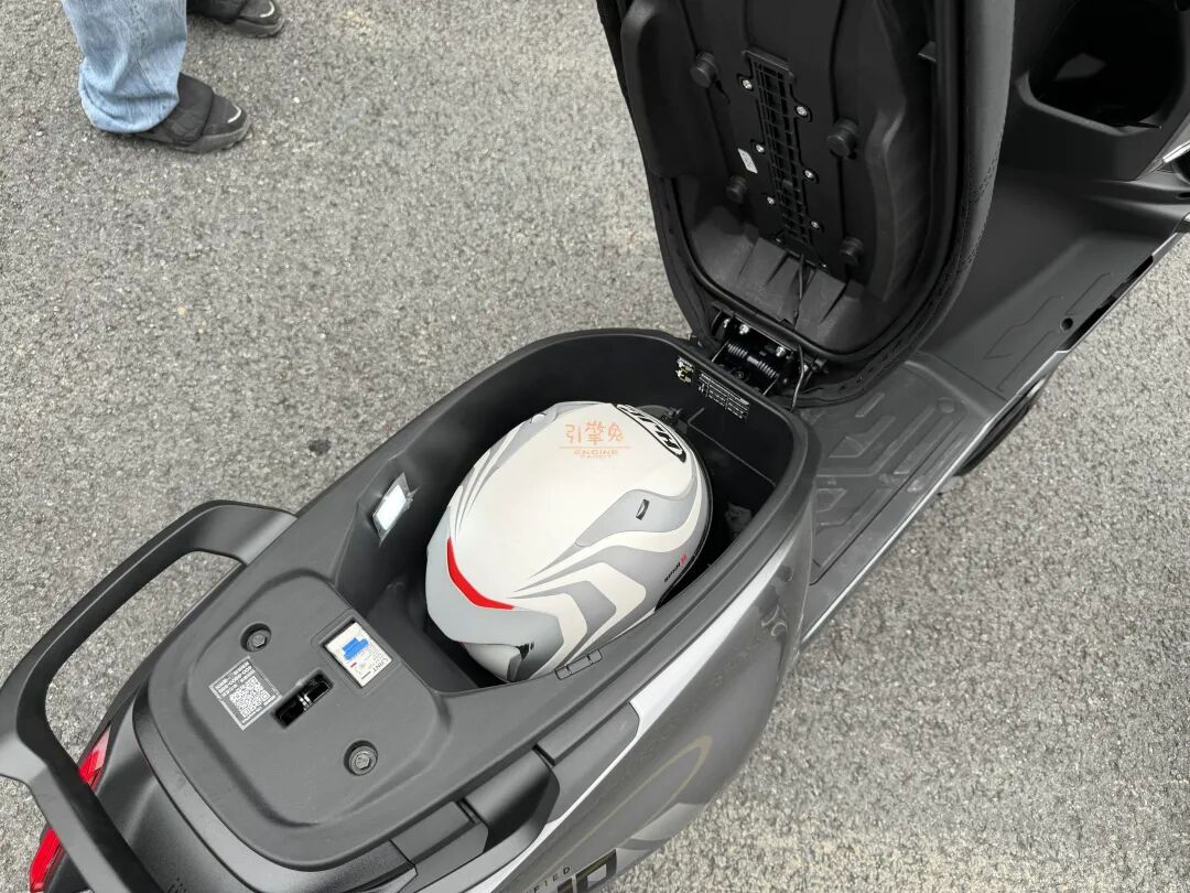 座桶内部空间进行小幅度扩大,拥有31.5L容量,可放一定全盔,布局重新规划,新增电池固定卡槽与物品分隔格,在放置头盔、手套、充电器时也能更规整。新增座桶照明灯,方便夜间取物,同时优化座垫开合角度,让使用更顺手。