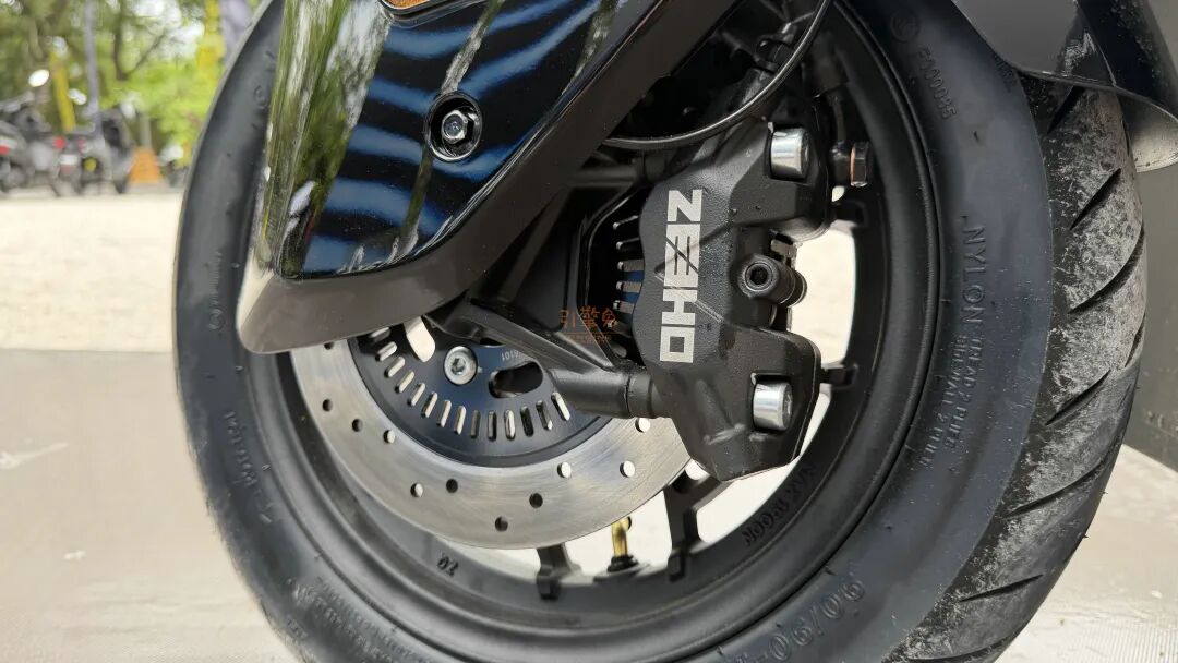 制动卡钳与刹车盘的规格进行了优化,让制动手感更线性、制动力度更充足。中高配车型配备双通道的ABS,低配车型则无ABS,紧急制动、湿滑路面刹车时不易抱死侧滑,提升骑行安全性。