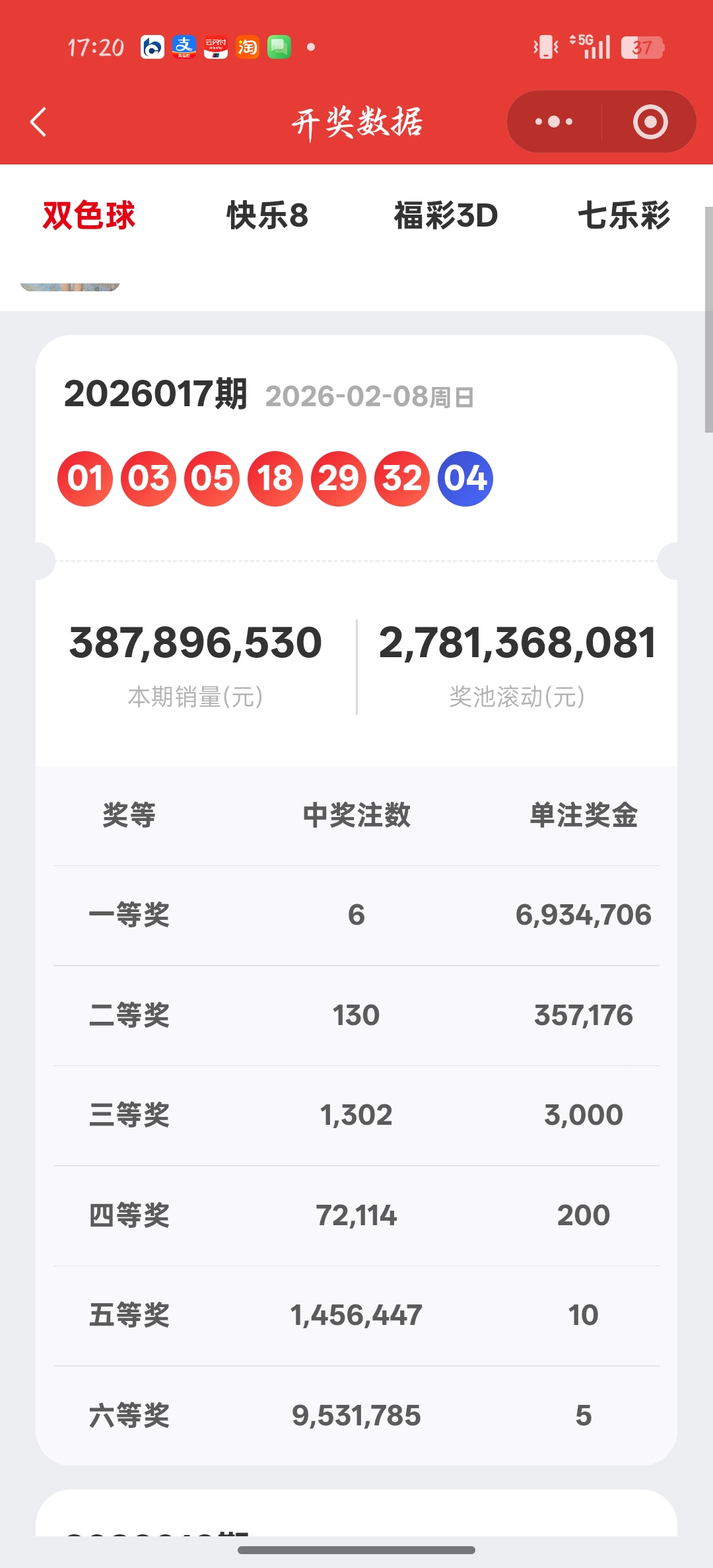 福彩双色球2026017期开奖信息