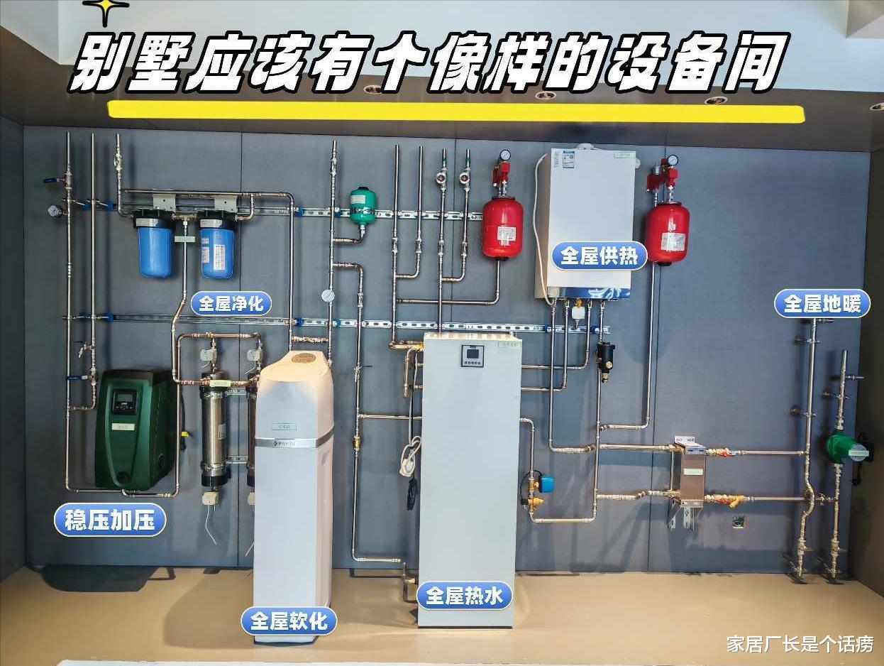 集中设备间: 规划一个独立、通风良好的设备间,将热水炉、软水机、新风主机、中央吸尘主机等集中安置。预留充足检修空间和电源,让维护一目了然,同时将运行噪音隔绝于生活区之外。