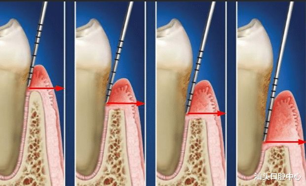 健康状态下,这条沟很浅,大约1-3毫米。可当细菌堆积、引发炎症后,牙龈会红肿、出血,沟也会不断加深,变成“牙周袋”。