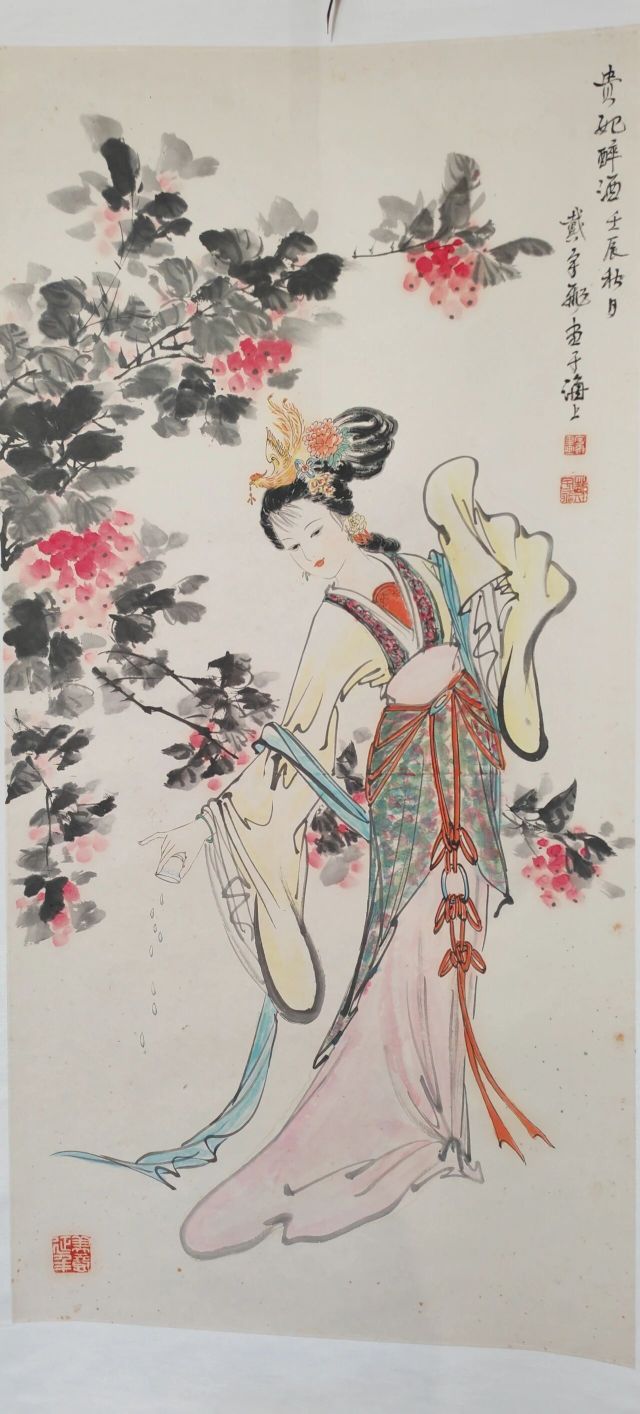 她研习宋元以来大家作品汲取精髓,师古而不泥古,在创作中追求新意,墨韵传神,兼工带写仕女画用笔流畅灵活有力,写意画奔放雄伟,水墨淋漓,笔墨非凡,别具苍劲灵动的神韵。
