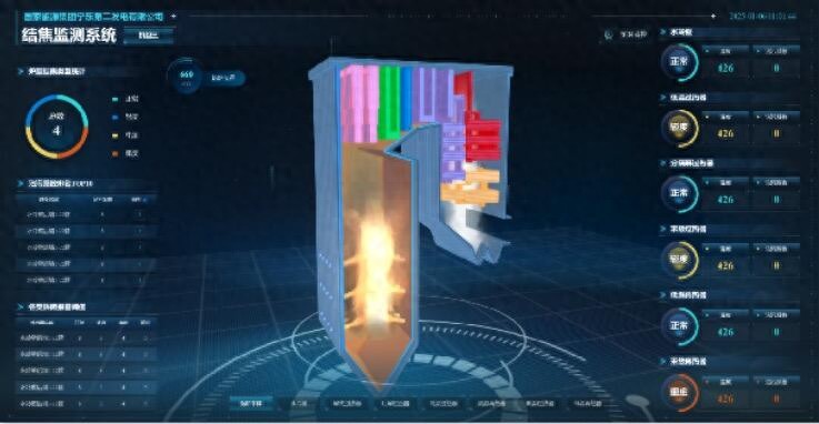 针对宁夏地区大比例掺烧新疆高碱煤的核心需求,该项目突破关键技术壁垒,形成多项原创性成果:通过系统研究,揭示碱金属/碱土金属对煤灰熔融特性的作用规律及沾污结渣机理,同步构建覆盖典型煤种的特性数据库,为掺烧参数优化提供基础支撑;创新开发高温高尘环境下受热面在线监视技术,结合炉膛燃烧可视化与结焦预警系统,实现炉膛沾污、结渣的“感知-量化-预警”一体化精准防控;提出高温高尘环境下烟气组分长周期多管路高效测量技术,解决水冷壁贴壁气氛实时监测难题,保障运行参数精准调控;研制原煤仓入炉煤快速切换与可定向配风调控的组合式贴壁风装置,搭配锅炉燃烧定向调控系统,有效支撑大比例掺烧工况下锅炉的长周期安全稳定运行。