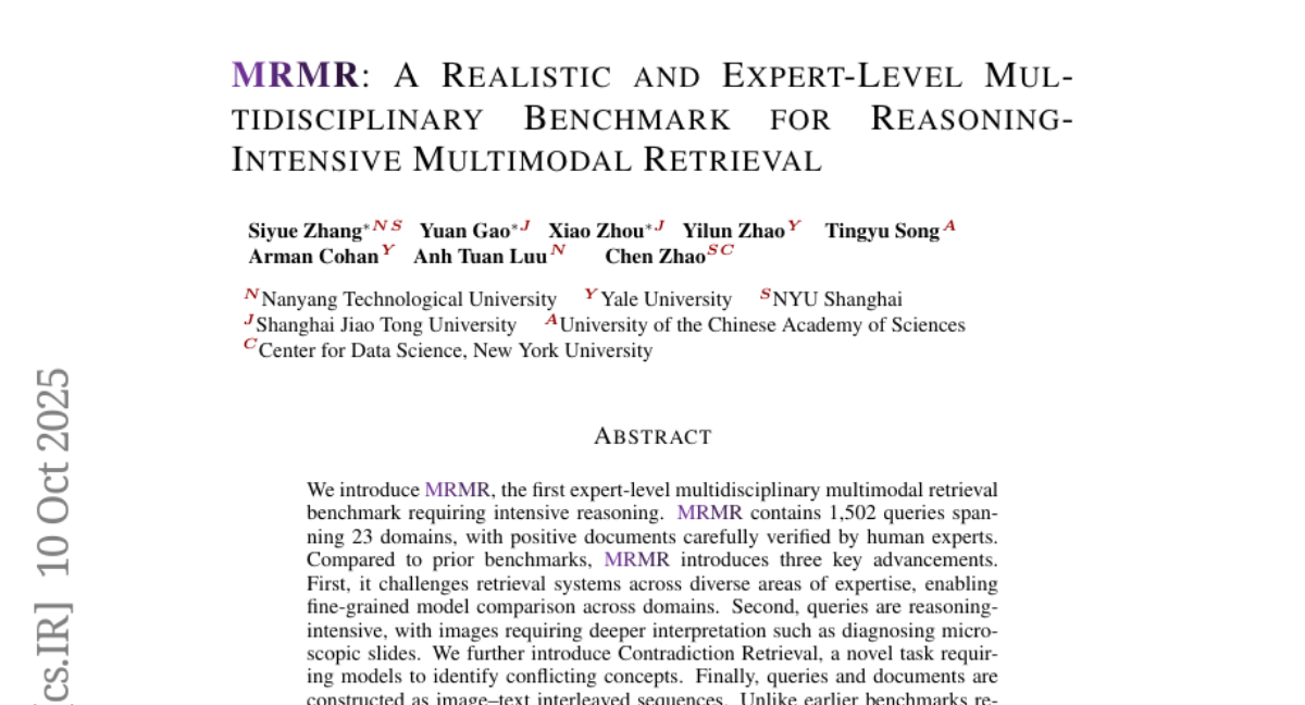 这项研究的创新之处在于三个方面。首先,它要求AI系统不仅要能处理单一的图像或文本,还要能理解图像和文字交织在一起的复杂文档,就像人类专家在阅读学术论文或技术报告时一样。其次,这些查询任务需要深度推理,而不是简单的关键词匹配。最后,研究还首次引入了"矛盾检索"的概念,要求AI系统能够识别出与查询内容相冲突的信息,这对于专业领域的风险防控具有重要意义。