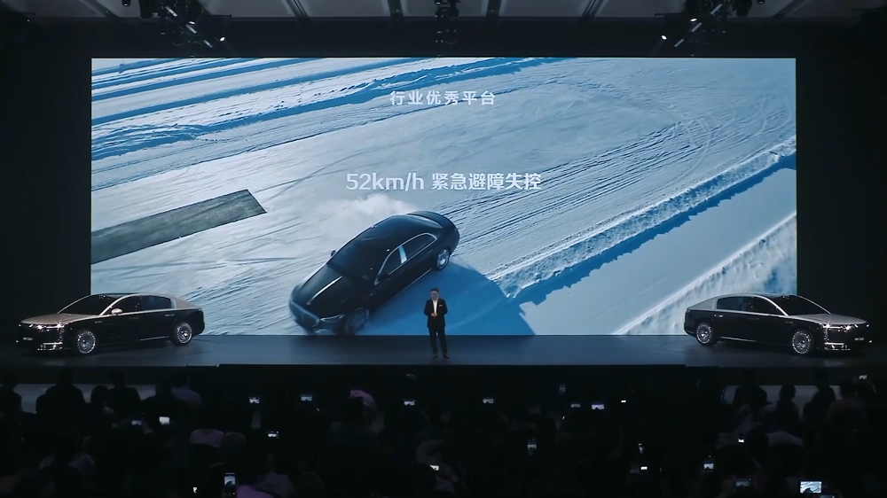 段建军虽然没有指名道姓,但关注车圈的都会马上联想到今年2月尊界S800技术发布会上的一段视频。当时华为常务董事、终端BG董事长余承东为了突出尊界S800的冰雪路面行驶稳定性,找来了一辆迈巴赫S级一起在半沥青半冰面的道路条件下进行紧急避障测试。