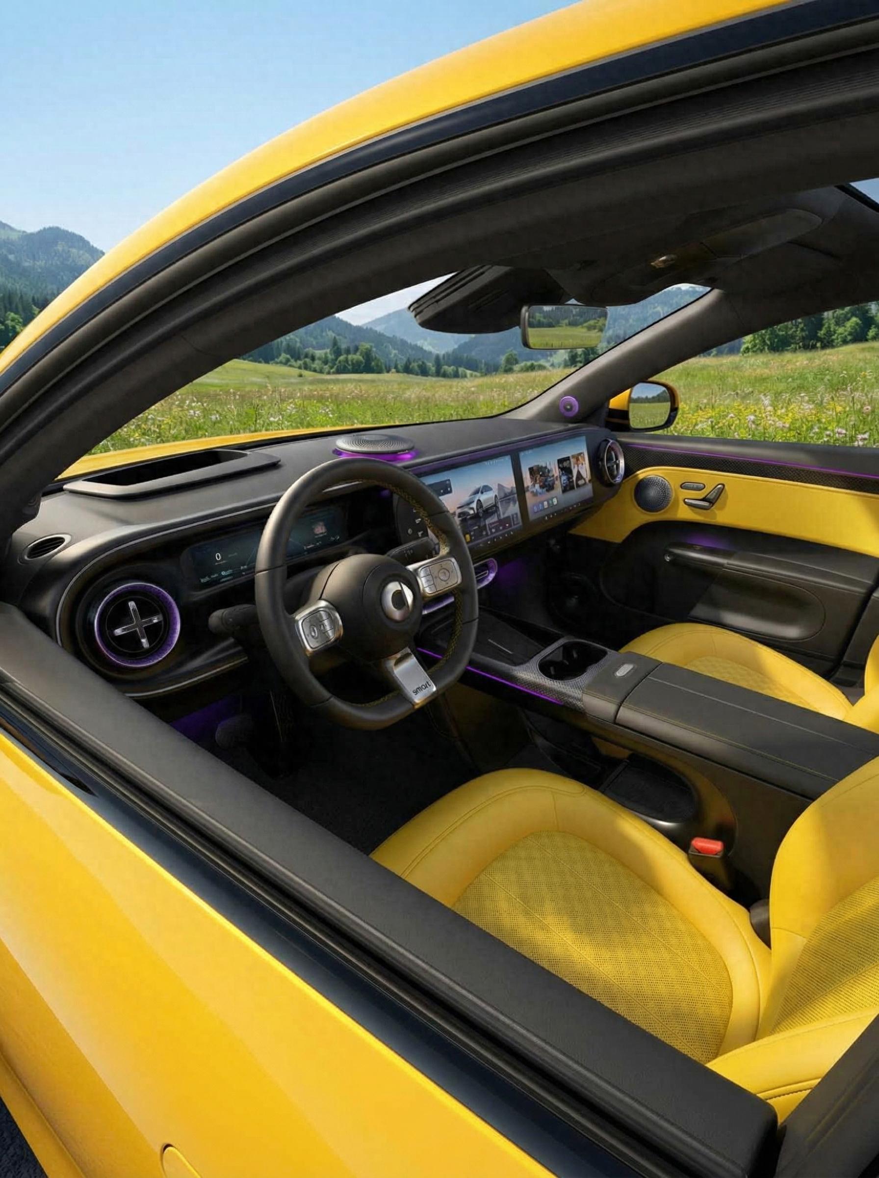 全新smart精灵6号的座椅纹样据说灵感来自伦敦萨维尔街的定制剪裁。多针数控打孔配合10000个精密孔径,孔型会随座椅曲面变化而变化,有点像裁缝顺着肩线走针。这套设计的目的是在提供良好支撑的同时,通过打孔增加透气性和视觉层次。