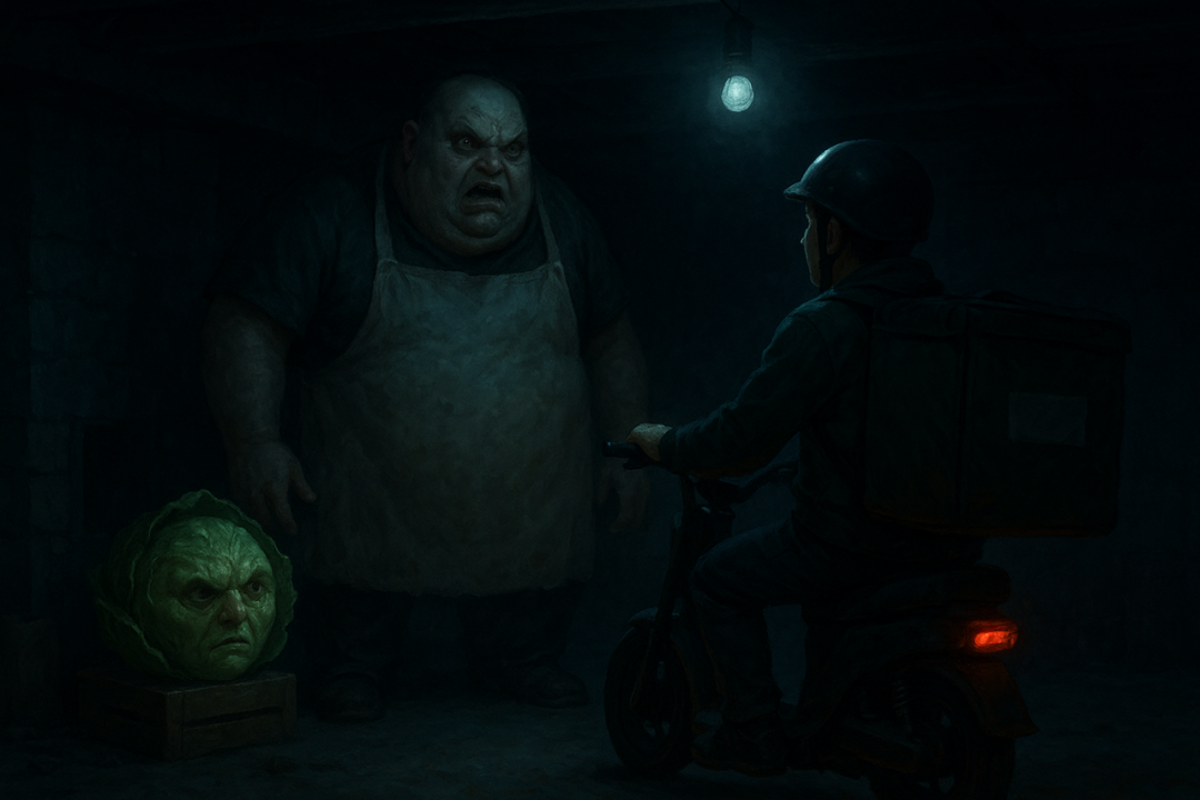 李建吞了口吐沫,点点头,把袋子塞进外卖箱。他试着晃了晃,袋子里传来轻微的“咕咚”声,像有液体在晃动。他的胃一阵翻腾,脑子里闪过一个可怕的念头:“这不会是……一颗人头吧?”