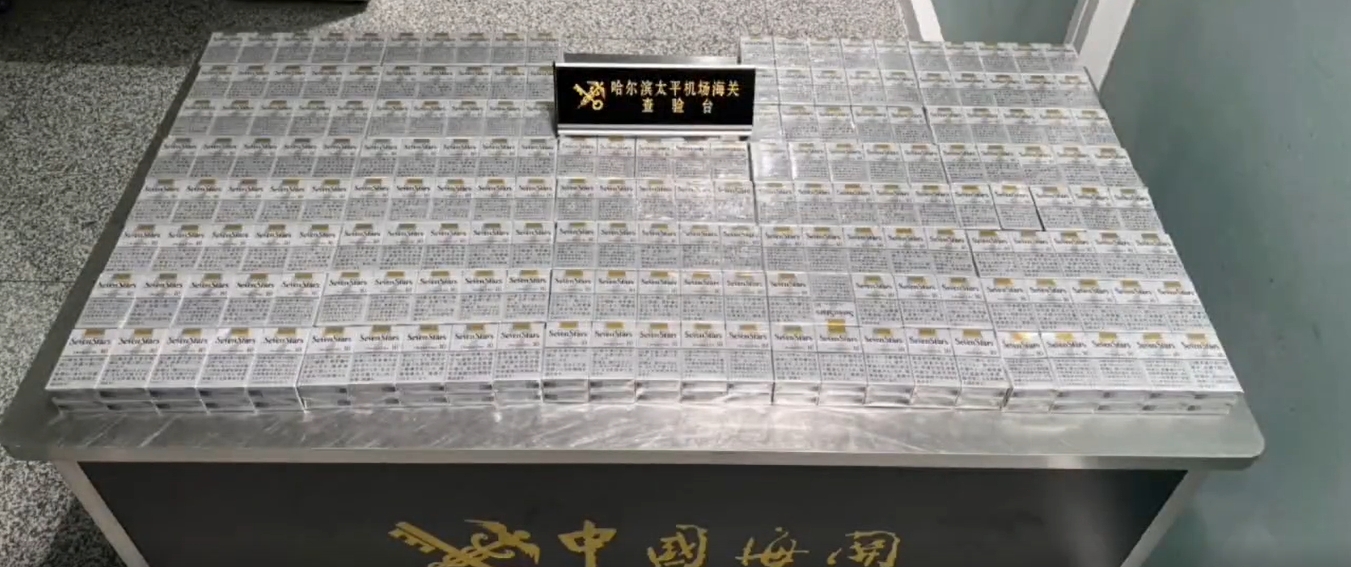 近日,哈尔滨海关查获一起旅客走私香烟进境案。