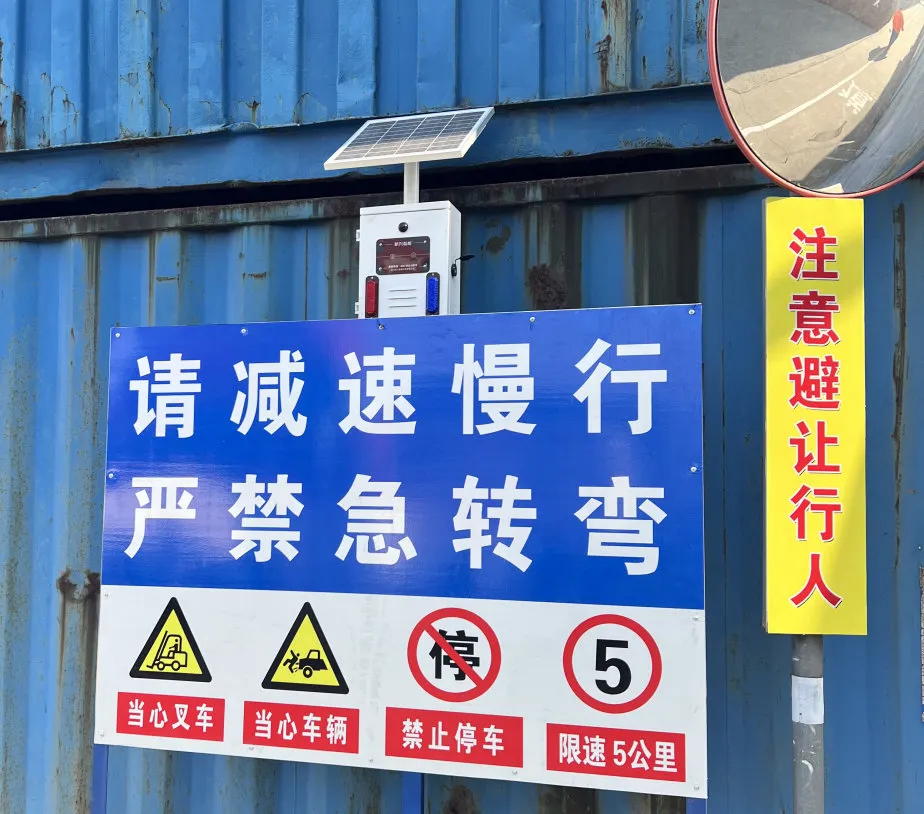 3、基础配套弱:多数园区户外区域无稳定供电条件,传统警示设备(反光条、警示牌)被动警示效果差,夜间、恶劣天气下易失效,无法实现主动预警,且人工维护成本高,需定期检查更换,进一步增加管理负担。