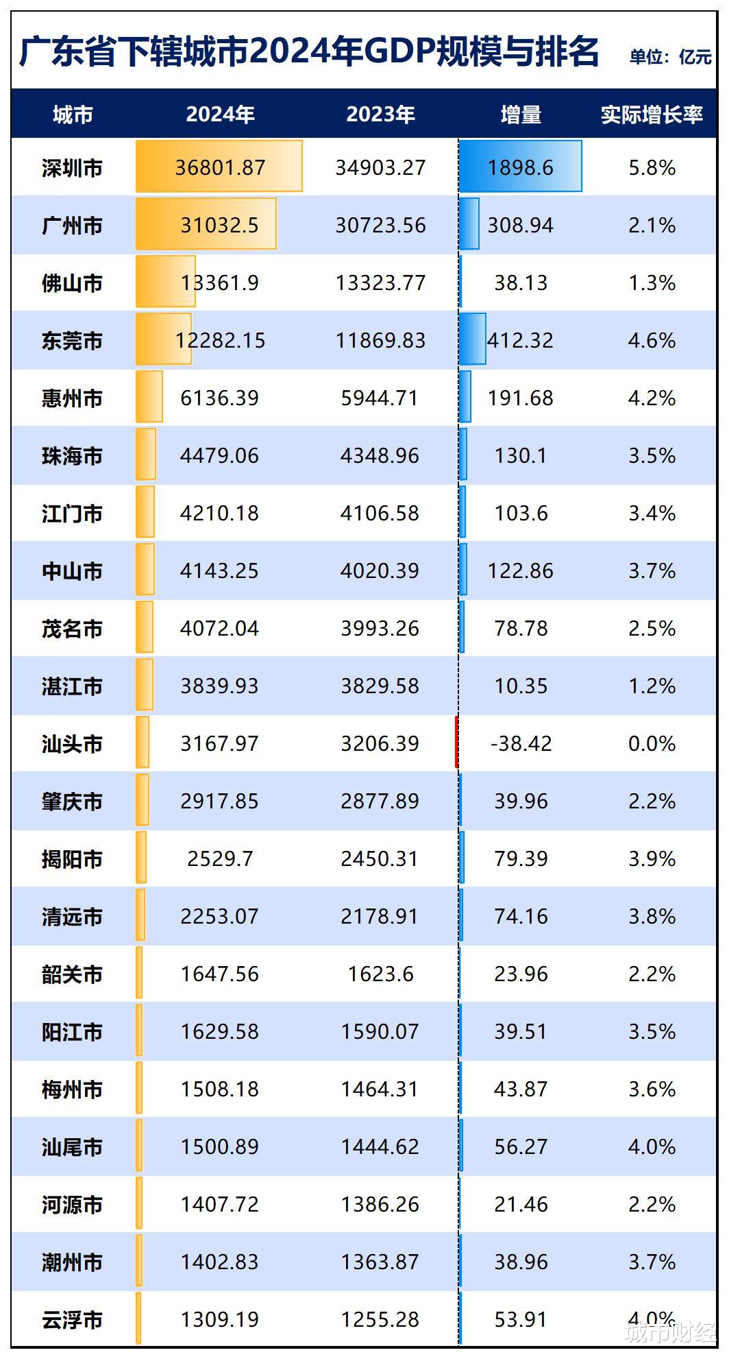 广东经济第一城深圳2024年GDP为3.68万亿元,江苏经济第一城苏州、四川经济第一城成都、浙江经济第一城杭州、湖北经济第一城武汉的规模也都在2万亿之上。