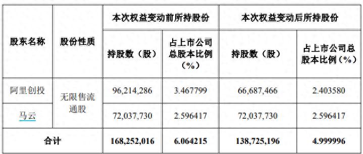 公告称,本次减持有利于公司股权结构的稳定,不会对公司正常经营产生不利影响。阿里创投及一致行动人马云在此次权益变动后,仍合计持有公司股份138,725,196股,占公司总股本的4.999996%。本次变动之后阿里创投及其一致行动人马云不再是华谊兄弟持股5%以上股东。