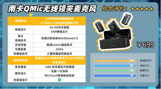 为了提供更贴合创作者和专业场景的收音体验,南卡QMic性能配置全面优于同级标准:
