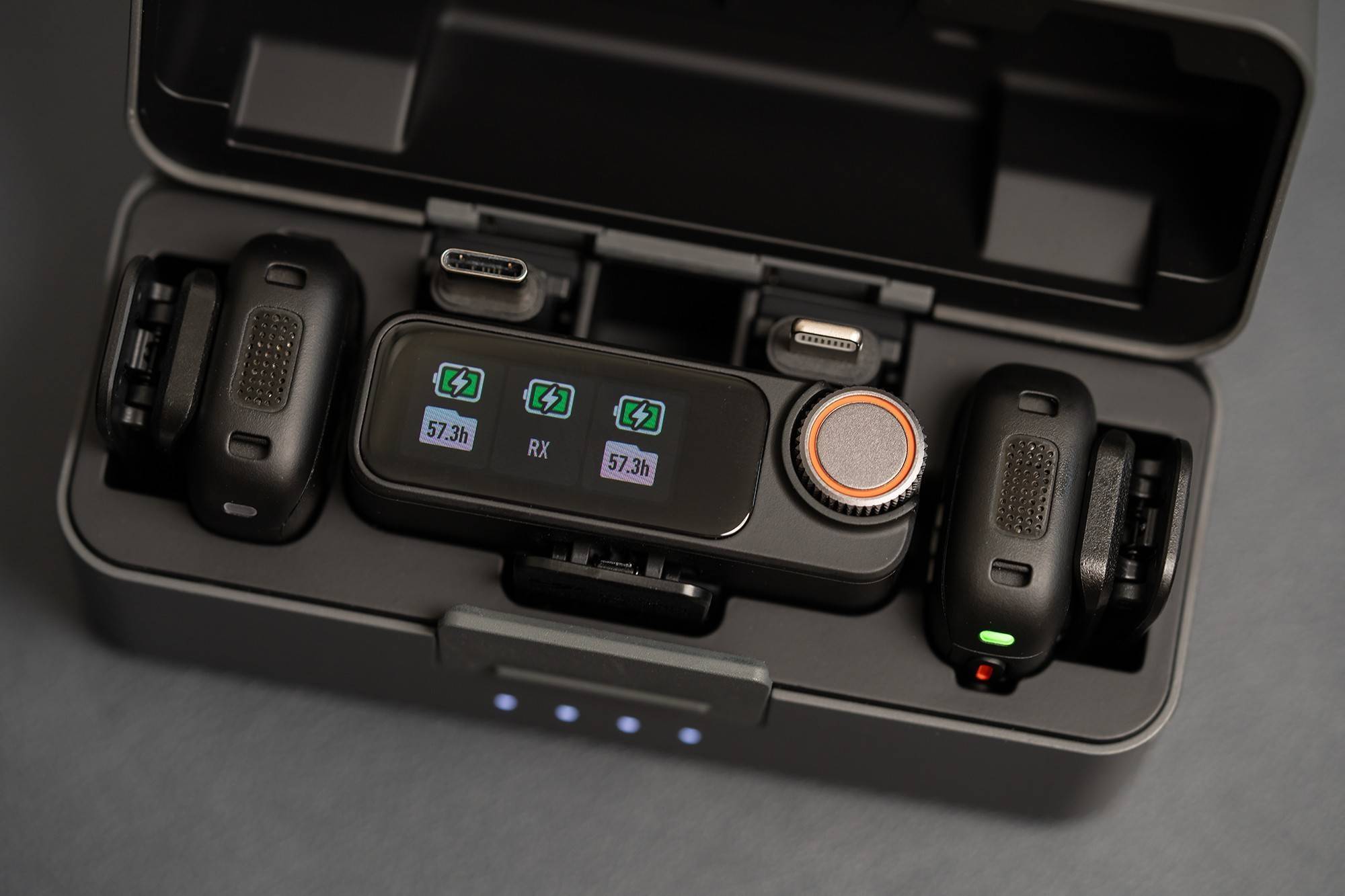 开启内录时发射器续航约5小时,关闭内录可延长至8小时;接收器续航可达24小时,并可为发射器充电,满足日常拍摄需求。但在高强度、长时间外景创作中,仍可能需要中途补电。