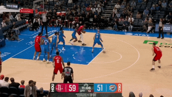 第二节最后时刻,米切尔三分出手,阿门的防守以及奥科吉的防守就是反面教材,扑得太狠没有必要,还赔上了一次3+1