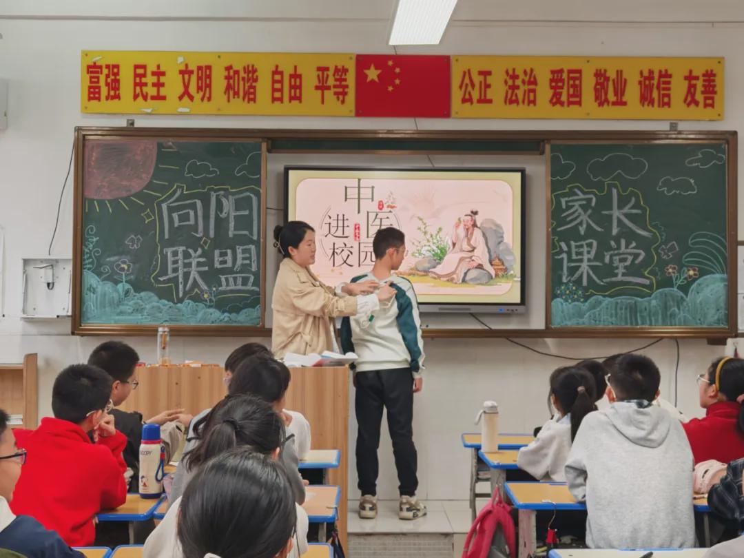 六(5)班开展了“中医进课堂”家长课堂活动,何昱汐同学的妈妈来到班级,为孩子们带来了一场别开生面的中医知识讲座!