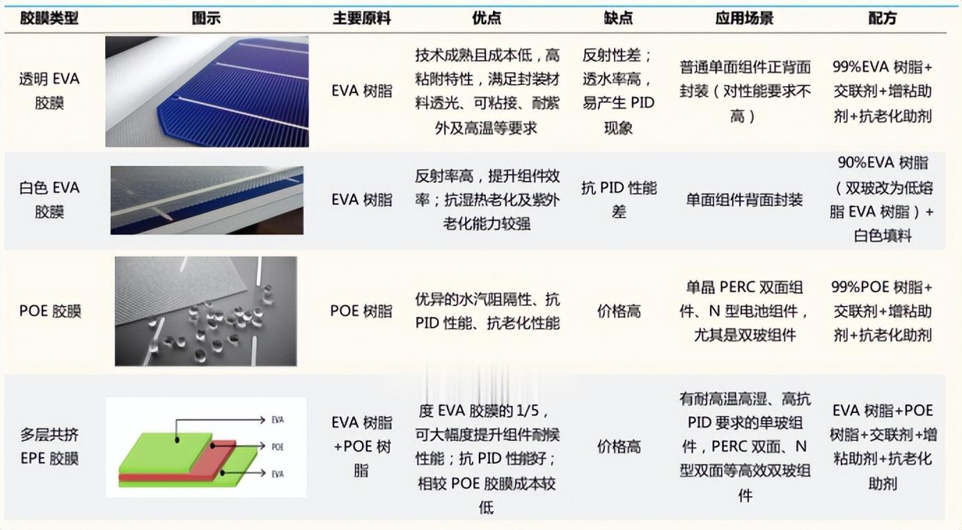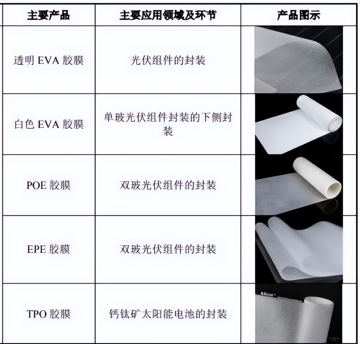 此外,钙钛矿组件采用TPO胶膜。不同胶膜由于材料不同,适用场景也各不相同。