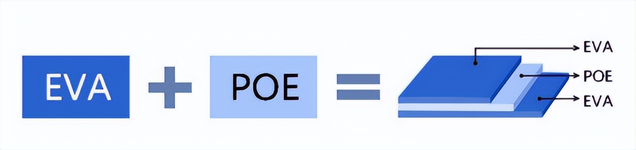 为了解决上述问题,光伏胶膜厂商推出了EVA-POE-EVA的三明治型共挤结构胶膜,即EPE胶膜。EPE胶膜上下两层均为EVA胶膜,中间为POE胶膜。EPE胶膜既具有EVA材料的层压工艺便利性和高粘接性,又具有POE材料优异的抗PID性能、低水汽透过率、耐紫外以及耐湿热性能,可以解决层压过程中焊带、电池片移动跑偏问题,提高组件封装良品率,同时又降低胶膜成本。