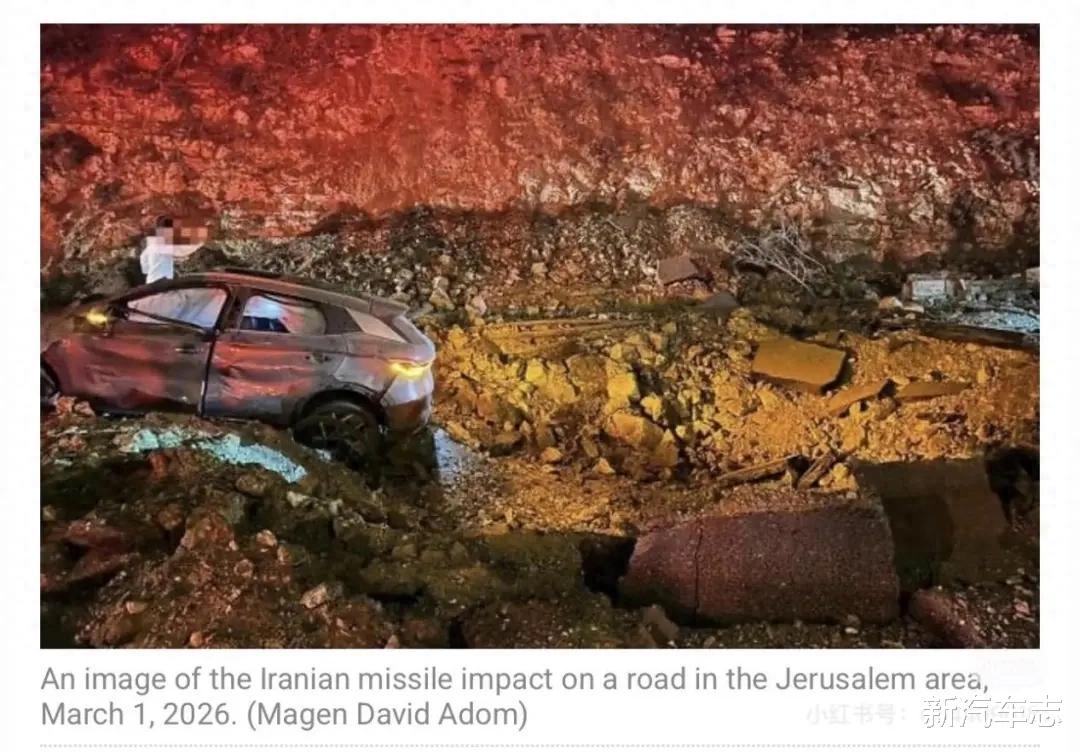 3月1日,一枚伊朗导弹在耶路撒冷周边爆炸。报道称,导弹爆炸后在路面留下明显弹坑,周边多辆汽车受损严重,交通标志牌被直接炸飞,可见爆炸威力之大。图中可见一辆比亚迪元PLUS(海外名称ATTO 3)贴身接了一发导弹,不幸被爆炸波及。受波及的比亚迪元PLUS,虽难逃外部损伤,其车窗碎裂、车体变形、外观受损,但核心表现让人意外。