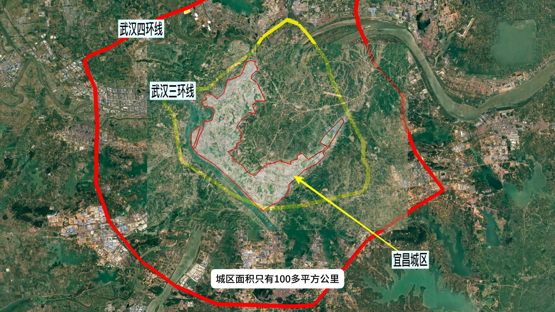 ·接下来看到的是宜昌城区和武汉市区对比图。宜昌不算大,城区面积只有100多平方公里,是武汉市区的1/3左右。从卫星图来看,宜昌和襄阳的问题一样,就是只有市区没有郊区。原因在于襄阳和宜昌的产业不具备外溢的效能。