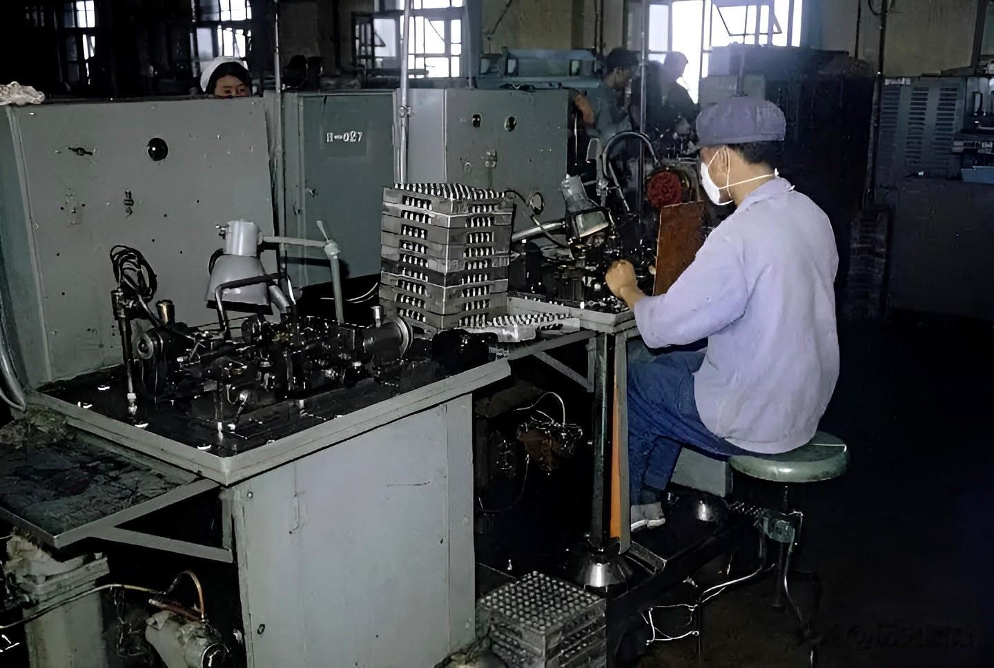 工人们身穿统一的蓝色工作服,各自坚守岗位,全神贯注操控各类设备,进行零部件组装与设备性能调试等。