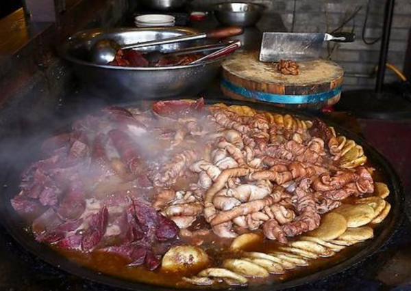 一大锅的猪肺、猪肠和五花肉,让北京人的眼睛都亮了起来,浇上了大蒜和香菜,哪怕是最贵的烤鸭也不能比较,一锅红烧肉,爱吃他的人三餐都离不开它,不爱的人一看就有种落荒而逃的冲动,因为那股刺鼻的味道,让他们根本就承受不住。喜欢吃卤味的人,大肠绵软有弹性,肺脏又软又脆,猪肉混合在一起,散发出一股咸鲜的味道,油炸的豆腐干散发着浓郁的油脂,切好的火烧散发着清香,松软却又不失去口感,所有的一切都集中在了一碗里,让这股味道变得更加浓郁。