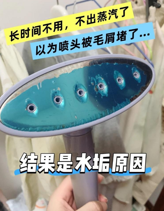最烦的是,用久了喷头会出水垢,喷出来的不是均匀蒸汽,而是水花,衣服上全是水渍。
