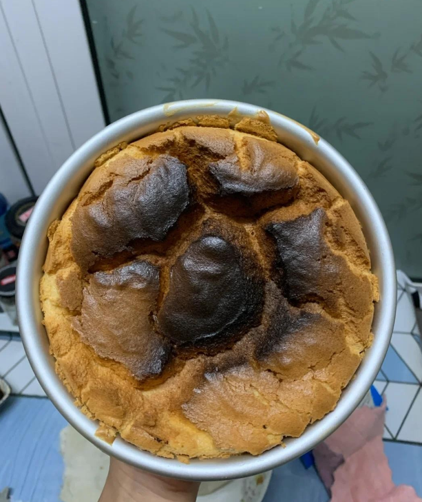 做出来的蛋糕,表面已经焦了,里面还没熟;烤鸡翅更是一边生一边糊,让人哭笑不得。