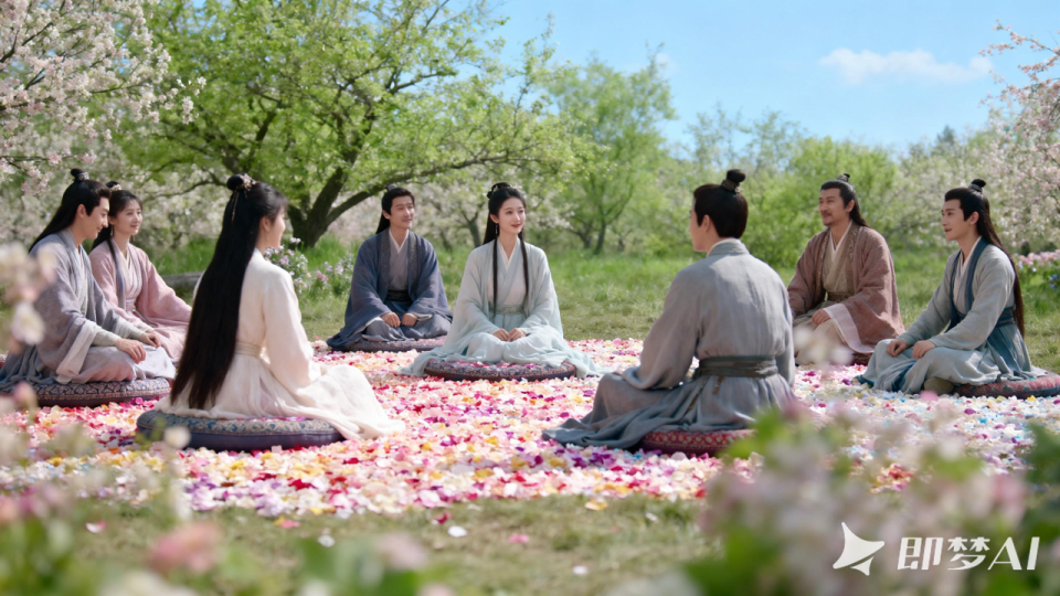 袁宏道曾在文中记录下游春的经历,他和朋友出游,“少倦,卧地上饮”,于是便计算飘落脸上的花瓣数,多的人饮酒一杯,少的歌唱一曲。