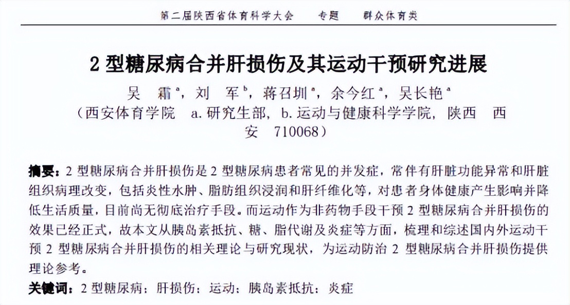 参考资料:[1]吴霜,2型糖尿病合并肝损伤及其运动干预研究进展,第二届陕西省体育科学大会论文摘要集(专题九),2024-06-18