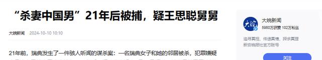大皖新闻2024年10月10日——“杀妻中国男”21年后被捕,疑王思聪舅舅