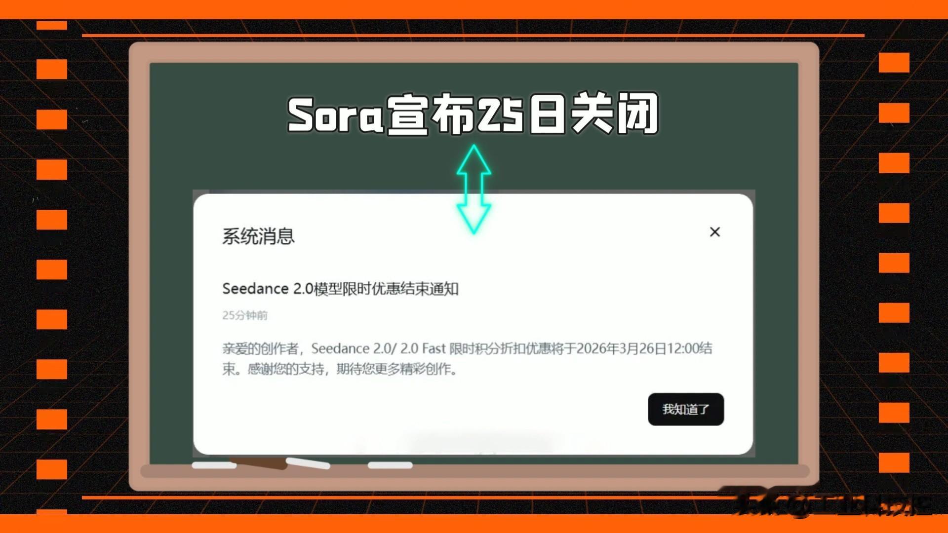 sora宣布在25号关闭,而25号我在即梦后台也同时收到了26日取消优惠的消息,这两件事赶在同一天宣布,的确很容易让人推测它们之间存在关联。
