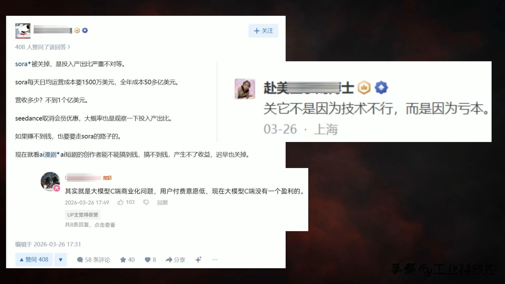 因为自从sora被关闭之后,他们真的特别急,急着把openai关闭Sora的理由归结为IPO、版权限制、节省算力资源、不赚钱...连夜编了一堆体面说辞。