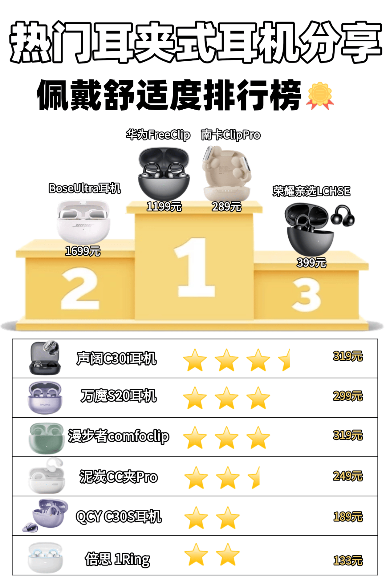 这些都是实测多款主流耳夹式耳机后的总结,无论你是通勤听歌、运动健身,还是日常办公用,优质耳夹式耳机都能带来无负担的听觉体验。下面耳夹式耳机 10 大品牌推荐,会详细分析各款优劣,帮你找到性价比高的靠谱款,希望有你中意的款式~